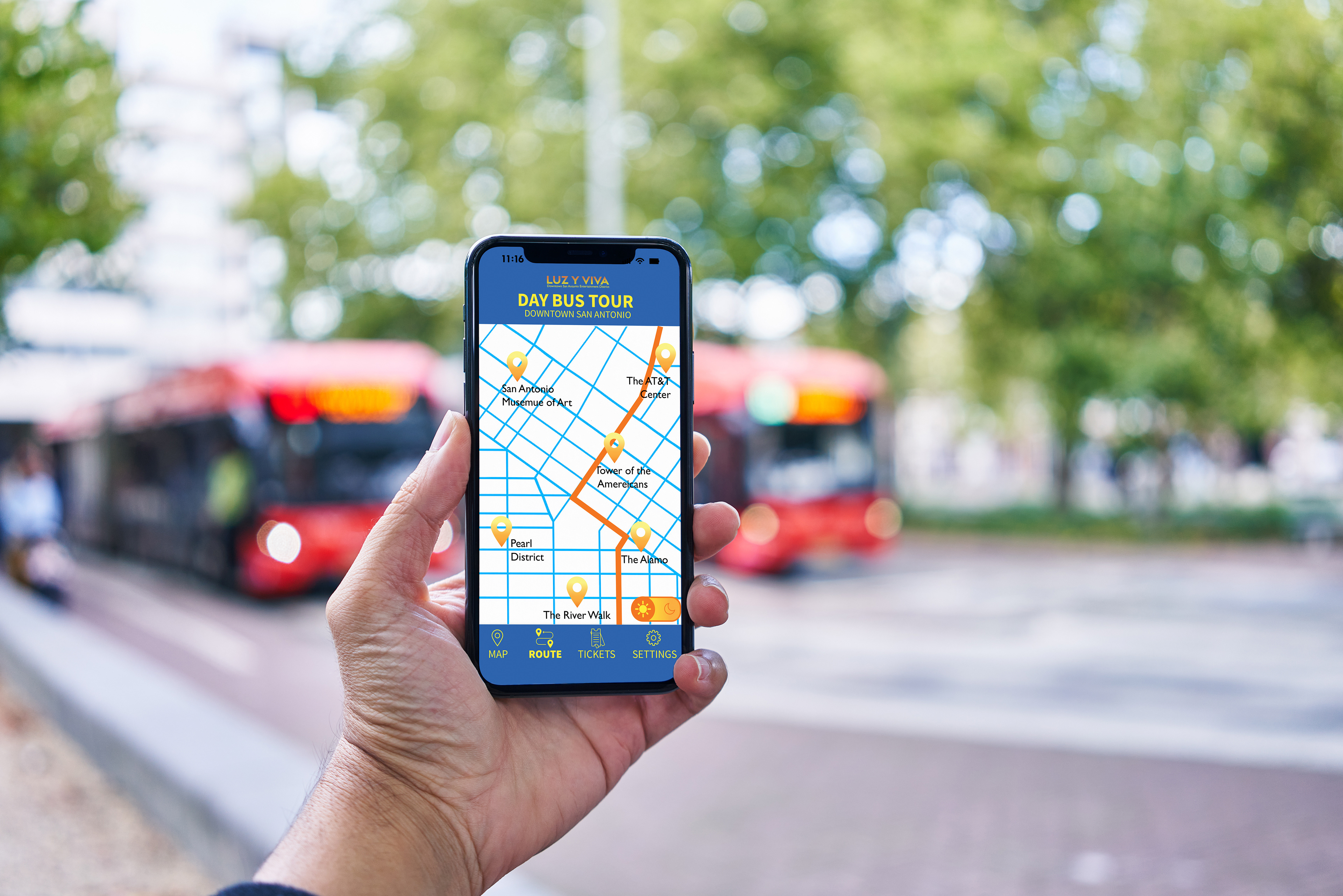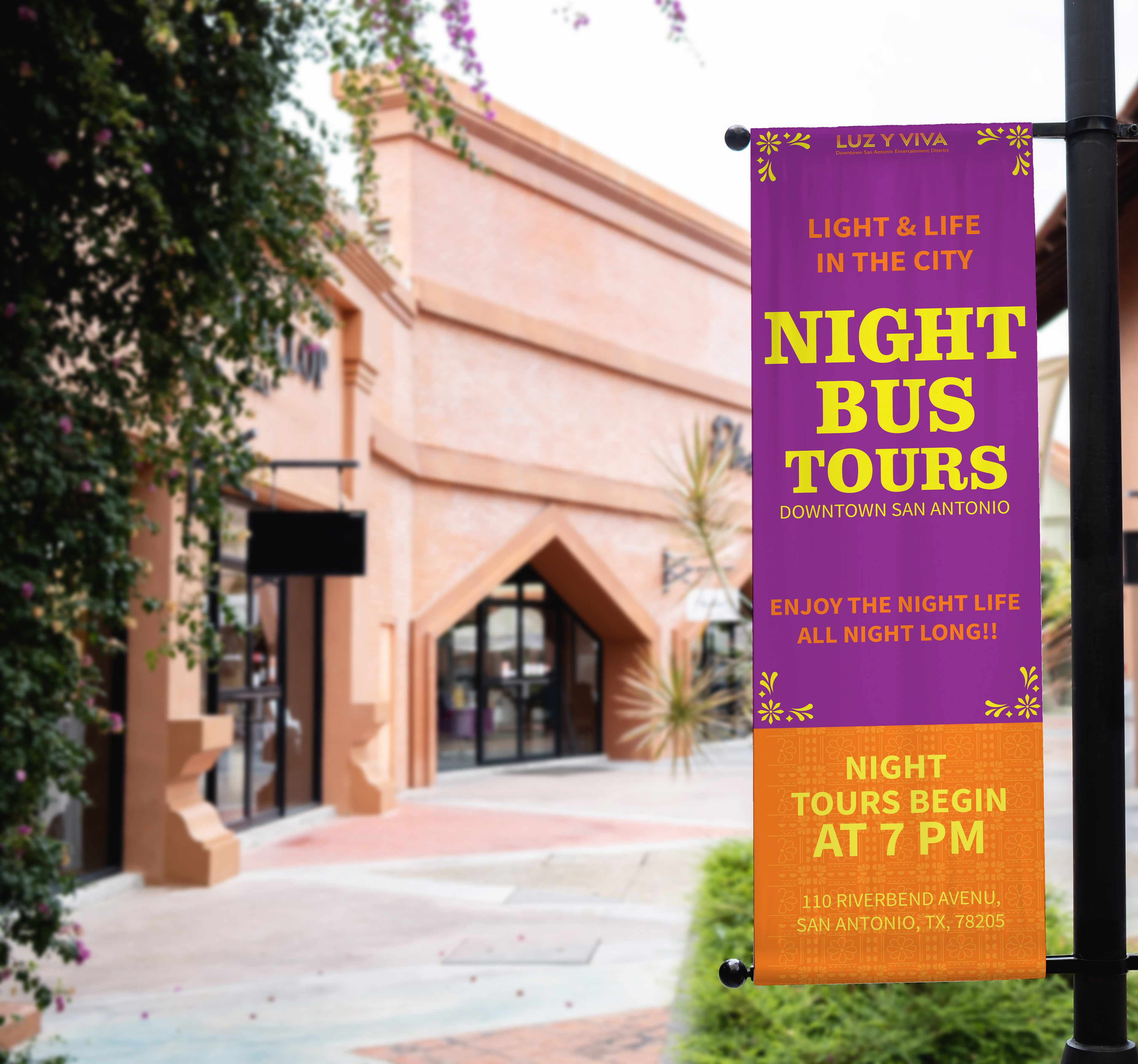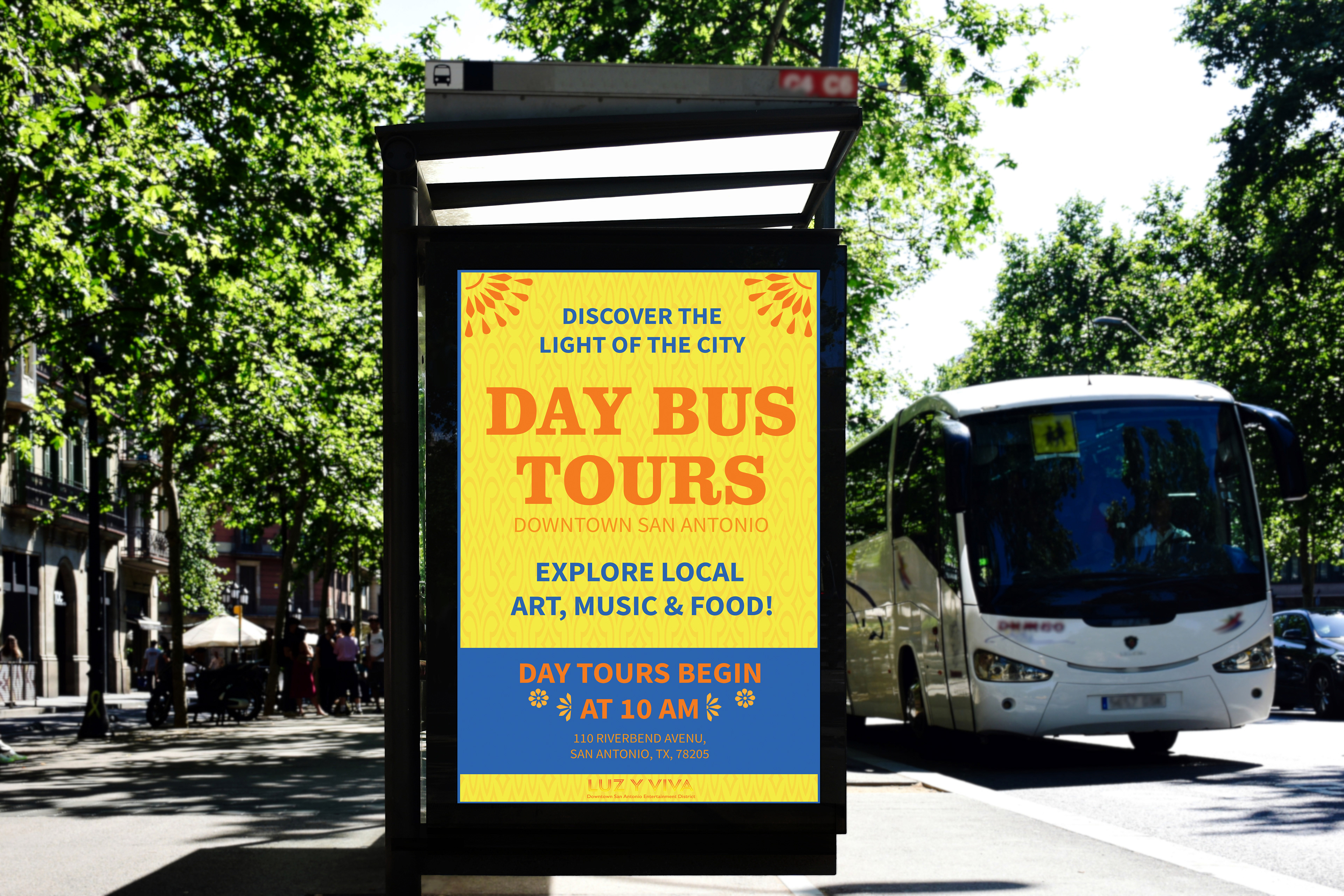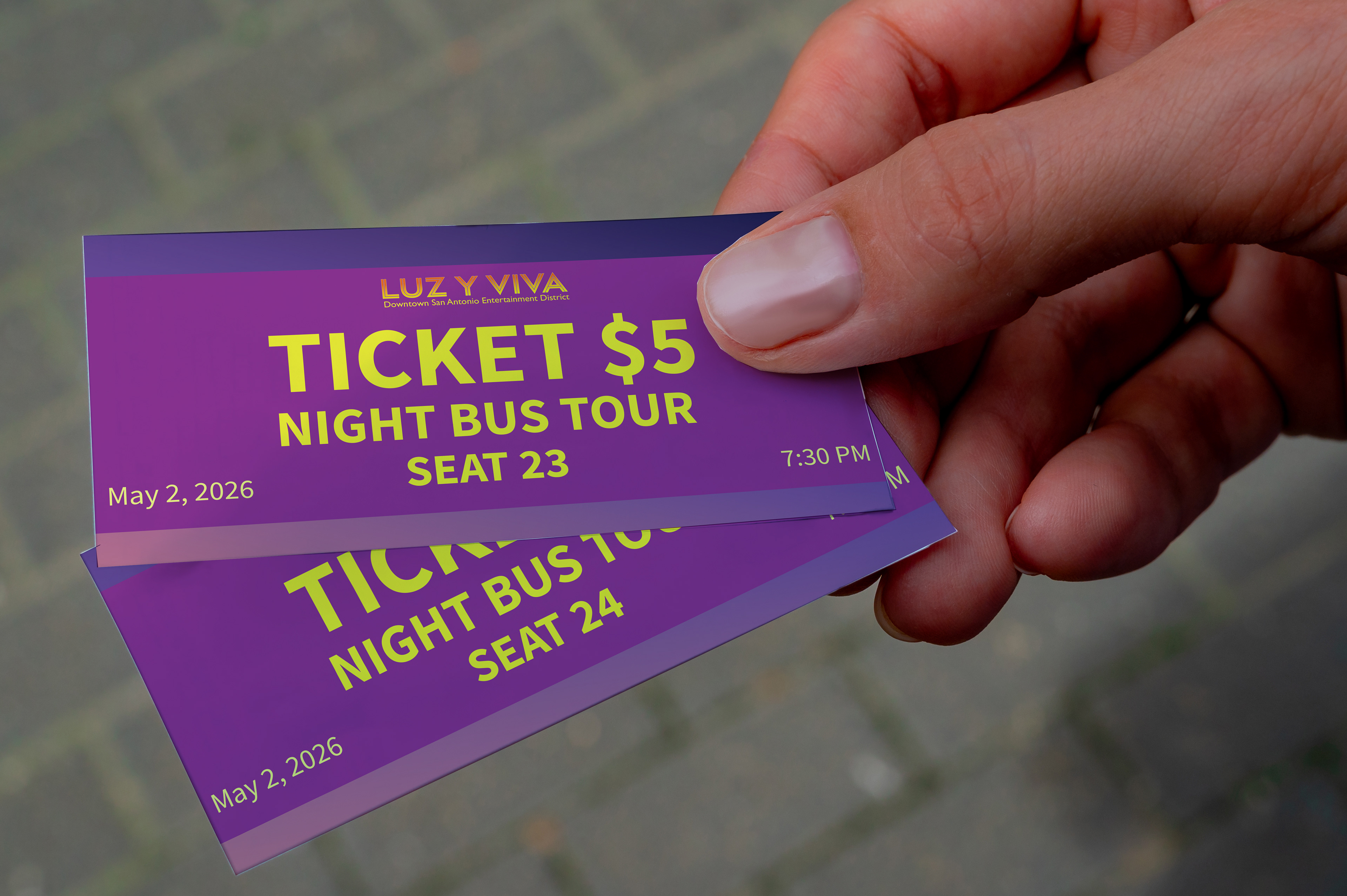Luz Y Viva (Light and Life) is an interactive cultural transit experience designed to celebrate the art, history, and vibrancy of San Antonio. Through a dual-mode bus system, immersive app interface, collectible ticketing, and curated merchandise, the event transforms city exploration into a dynamic journey of light and life. The system bridges digital and physical experiences to deepen engagement with the city's artistic identity.
